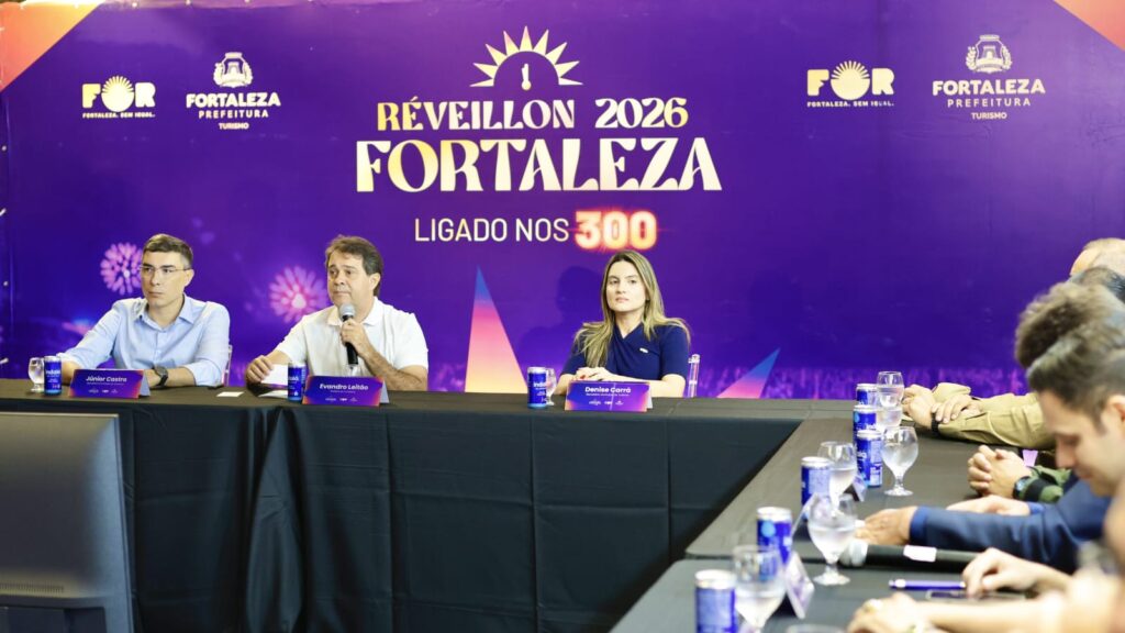 A Prefeitura de Fortaleza anunciou, nesta terça-feira, dia 23 de dezembro, o plano operacional do Réveillon 2026. O momento contou com a presença do prefeito Evandro Leitão e de representantes de órgãos municipais envolvidos na organização do evento. A apresentação foi conduzida pela secretária do Turismo, Denise Carrá, que detalhou o planejamento integrado das ações e o modelo descentralizado do evento, que neste ano contará com polos em Messejana, no Conjunto Ceará e no Aterro da Praia de Iracema.
